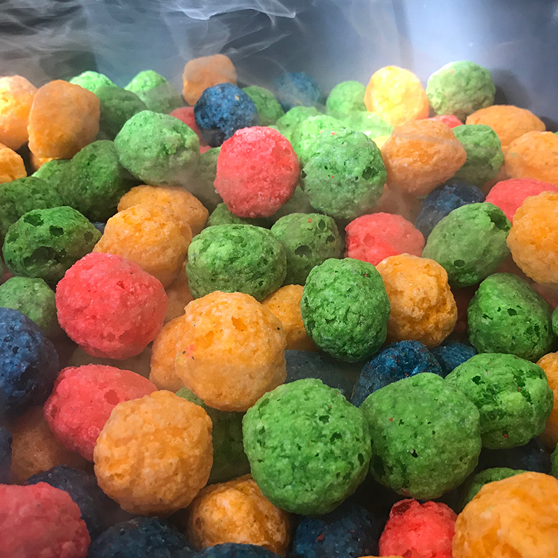 Recently we have developed "Dragon Breath" which is a fruit flavoured Sweet Corn Puff, it is served with cold ice. Dragon Breath is a Frozen dessert made from cereal dipped in ice. When placed in the eater's mouth, it produces vapors which comes out of the nose and mouth, giving the dessert its name.